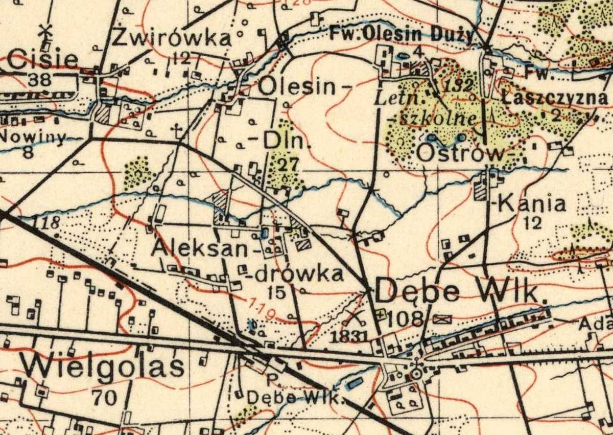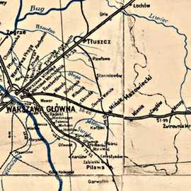 Nareszcie nocą przejechaliśmy przez most na Wiśle w Warszawie. Po minięciu stolicy nasz transport nabrał szybkości. Dojechaliśmy przed stację Dębe Wielkie koło Mińska Mazowieckiego. Pociągi stanęły. Ogłoszono alarm. Trwał nalot niemieckiego lotnictwa szturmowo – nurkującego, tak zwanych „Sztukasów”. Bombardowali stację. Jedna z bomb uderzyła w połączenie dwóch wagonów kolei elektrycznej, podmiejskiej. Dwa wagony pełne trupów! Masakra! Zabici na korytarzu stali, tak byli stłoczeni i poplątani. Z okien zwisały głowy zabitych, osmalonych. Ciekła im krew z ust i uszu. Z wagonów, przez dolne szpary płynęła czerwona struga krwi, na całą szerokość zamkniętych drzwi! W słońcu mieniła się, ta struga krwi, jak rubinowy płat lśniącego jedwabiu wypływający z maszyny farbiarskiej.