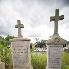 Zapraszamy na wirtualny spacer na cmentarzu parafialnym w Dobrem. Na zdjęciach między innymi mogiła Jana Zycha, zasłużonego dla pamięci Konstantego Laszczki kierownika szkoły w Dobrem.