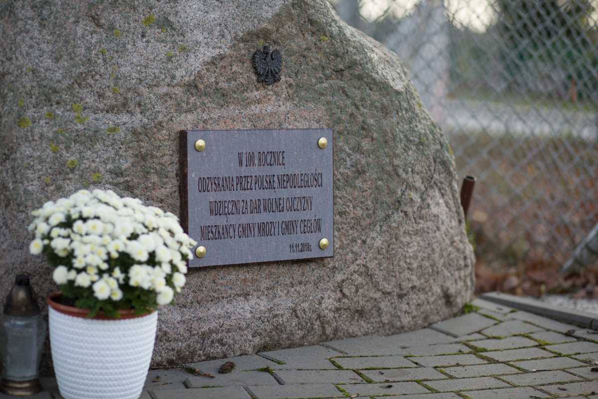 W 1928 roku Komitet Obchodów Dziesięciolecia doprowadził do skutku wzniesienie pomnika na skrzyżowaniu drogi Latowicz - Mrozy z drogą do rezerwatu Florianów. Głaz pierwotnie nosił napis "Dąb wolności na pamiątkę Dziesięciolecia Wskrzeszenia Polski w 1918 roku" oraz był ogrodzony płotkiem ze sztachet. Obecnie nie jest ogrodzony, zaś ma przymocowaną współczesną tabliczkę "W 100. ROCZNICĘ ODZYSKANIA PRZEZ POLSKĘ NIEPODLEGŁOSCI WDZIĘCZNI ZA DAR WOLNEJ OJCZYZNY MIESZKAŃCY GMINY MROZY I GMINY CEGŁÓW 11.11.2018r.".